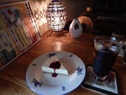 カフェにも色んな雰囲気のお店がありますが、こちらのお店は一言でいうと「大人のカフェ」というような感じで、落ち着いた雰囲気が印象的です。ゆったりとした空間でレアチ-ズケ-キとアイスコ-ヒ-を頂きました。チ-ズケ-キはクリ-ムチ-ズの代わりにヨ-グルとを使っているとの事で、甘さ控えめでサッパリとした口当たり。一番下はタルトのようにクッキ-生地になっていて、良いアクセントになってました。飲食以外に色々なイベントもやっているみたいですよ。 (訪問:2014/08)