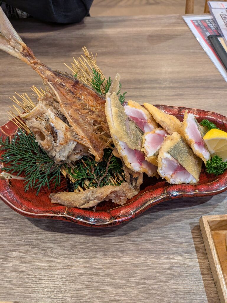レアあじフライをいただきました!写真の通りのボリューム!肉厚でおいしかった。骨も素揚げしてあるので骨までおいしくいただけました。 (訪問:2026/03/02)