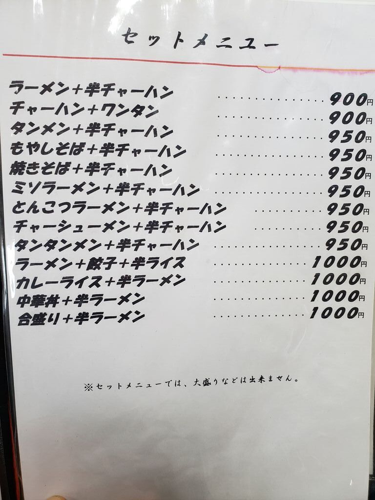 阿Qといえば、やきそば!かなり久しぶりだったのでこの味を再確認に来ました。ただ、チャーハンも捨てがたく結局両方味わえる、やきそば 半チャーハンセットを注文です。ここの普通盛りは世間でいう大盛りなので、やきそば大盛り+チャーハンとイメージしてください。勢いよくやきそばを食べ進みこのソースがたまらないと思いつつ、チャーハンも間に味わいながら、どちらも約半分食べた所でそろそろお腹いっぱいになり、残りを持ち帰ろうと考えていた時、テーブルにある注意書きが目に入りました。「10月までは持ち帰り不可」とのことです(泣)。ここで終わるわけにはいかないと、気合のギアを一段上げて再スタート。頑張りましたが、チャーハン完食、やきそば3/4食べた所でギブアップしました。腹がパンパンでしたが、やきそばの美味しさが昔と変わってなかった事が確認出来てよかったー。がっつり食べたい方にはホントおすすめです。ちなみに私の後に来た男性も、同じメニューを注文してました。完食出来たのか気になります(笑) (訪問:2022/09/20)
