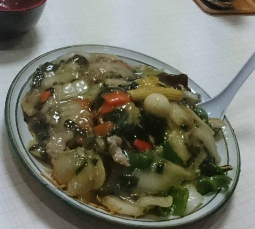 あんかけ焼きそばをたべました。こちらの名物は、ごはんもある合盛なんですが、満腹になるので、そばだけにしました(笑)きくらげやわかめもたっぷりのあんは、ずっとあつあつでした!ぱりぱりのそばの食感、そして、次第にあんとからんでしっとりしていく食感、二度たのしめました。 (訪問:2015/12)