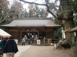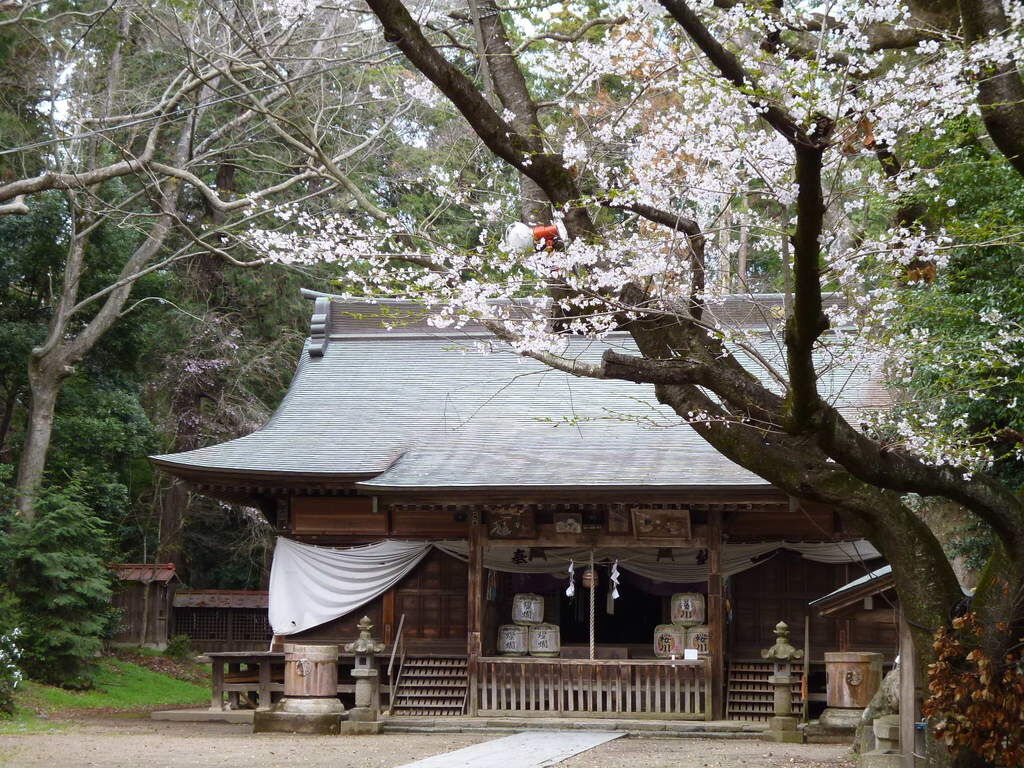 桜の咲く季節に一度は訪れたい神社です。境内にはキレイな桜が咲いています。本殿や参道の周りの社叢は県指定の天然記念物です。9月の例大祭には、参道で流鏑馬が行われます。 (訪問:2014/04)