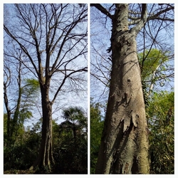 真岡市古木・名木を見に行きました。4本ある内の1本目はカヤです。樹高17mある木は根本から幹が裂け途中から二手に分かれて伸びております。その様子から古木感満載の木だなあと思いました。2本目のムクノキは樹高25mとノッポの木でスリムな体形をしております。周囲の木々が低いのでリーダー的存在ではないかと思いました。3本目はクスノキで樹高20mでコチラは草木の密集している所にありました。根本から幹にかけて苔が繁茂していますが共存共栄という事でしょうね。エネルギッシュな木で力を持てあましているようですが周囲の草木と平等に仲良くしているように思えました。4本目のモチは樹高16mの木ですが境内をくまなく探したんですが分からず写真を撮るのを断念しました。またの機会に見つけようと思います。これらの木は社叢(栃木県天然記念物)の一部であり境内には多くの大木古木があります。極上の森林浴を満喫できる神社です。 (訪問:2021/03/09)