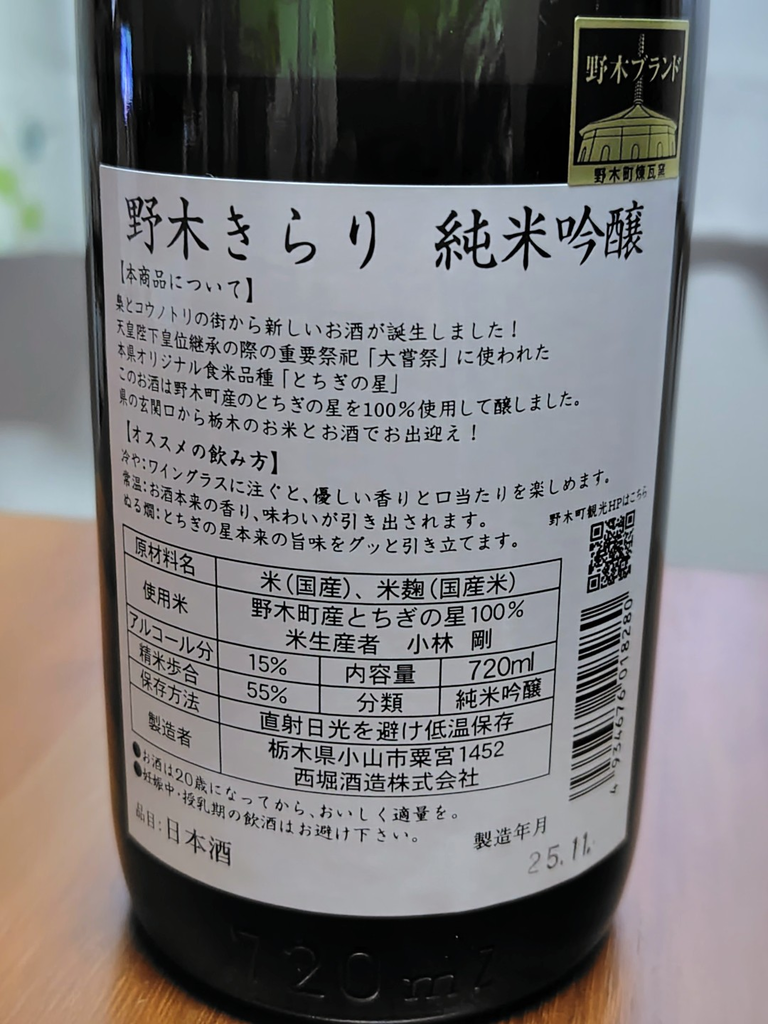 NEW野木町の酒屋さんで目に入った「野木きらり」。センスのあるパッケージと、ここでしか買えなそう!という特別感を感じて購入(◍•ᴗ•◍)!冷やでも常温でも温燗でもいける、美味しいお酒でした。 (訪問:2025/11/29)