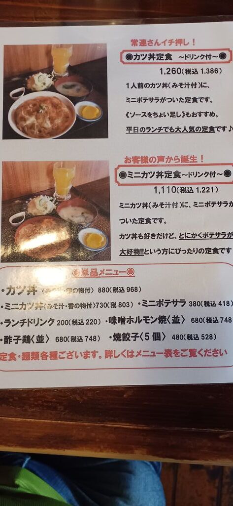 しばらくぶりに、カツ丼が食べたく、食べに来ました。今回は、人気NO.1のカツ丼セットのドリンク付きを、食べて来ました。セットのラーメンは、ハーフになっていますが、カツ丼を食べてだと、けっこう腹いっぱいになります。また、ポテサラが少しなんですけど、これまたうまいんです。また、食べに来ようって思っています。ごちそうさまでした。 (訪問:2025/09/06)