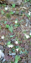 いつもトマトを買いに行く農家が、旧西方町にあり、293号線を走っていると、野菜直売所の近くの駐車場に何台か車が見えたので、これはと思い、車を止めて見に行って来ました。やはり、カタクリの花が山の斜面に咲いていて、とてもきれいでした。そして、白い小さな花があずまいちげと言う花みたいですが、これもまた、とてもきれいでした。花を見ながら歩いて行くと、山の斜面に桜が咲いていて、道から少し離れたところから見る桜は、すごく浮きだってとてもきれいでした。 (訪問:2022/03/27)