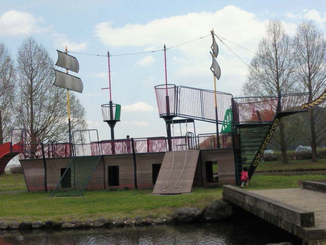 氏家のゆうゆうパークで局所的な雨にたたられたので、雲の流れを見てコチラに移動。雨上がりのためかしばらくは貸し切り状態となりました♪ 以前閉鎖されていた”海賊船型の遊具”も解禁され、子供たちは、はしごを上ったり、滑り台を滑ったり、丸太の平均台を歩いたり、甲板上で鬼ごっこしたりと満喫しておりました。 周回道路を自転車で回り、子供の補助無レベルもスキルアップすることができました。 (訪問:2011/04)