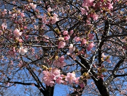 百村川沿いの桜が綺麗でした。河津桜でしょうか、濃いピンクが印象的。ソメイヨシノも開きはじめました。隣の交通公園のSL近くでは小さな子たちが楽しそうに遊んでいました。駐車場が公園の東西南北にあるので、アクセスに便利なのもいいですね。 (訪問:2022/03/30)