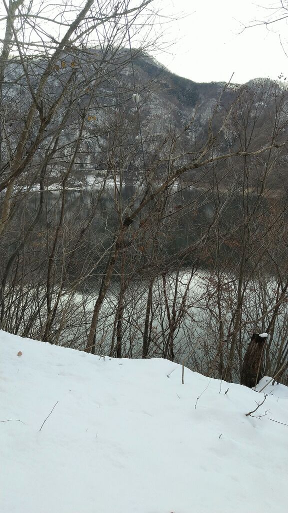 新緑の季節に目にした光景とは、うって変わり、水面が凍っていて神秘的な湖の【五十里湖】でした。思い出すだけでも、ぶるっ.....と、寒さが蘇りそれでいて冬ならではの、美しい景色が目に焼き付いていて、見られて良かったなぁ~と思いました。春の訪れは、まだまだ先の五十里湖です。 (訪問:2023/02/26)