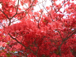 小間々の駐車場、大間々台の駐車場は朝9時の段階で満車です。ツツジの名所ということが各地に轟いているんでしょう。標高1200m程の高さなのでコノ時間の気温は15℃でした。展望台から眺めると青空と青く見える山々、緑と黄緑の木々、紫と赤のツツジと寒色から暖色と色彩豊かです。遊歩道を散策しました。紫色のトウゴクミツバツツジは満開から峠を越えた段階で朱色のヤマツツジは全体的に三部咲き程度でツボミを多く持っているものが多かったです。各所でコレラのツツジが仲良く咲いているのを眺められました。 (訪問:2024/05/18)