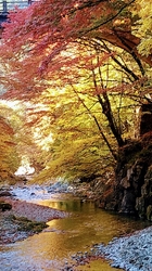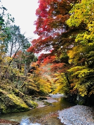 紅葉の終わりかけた(?)大芦渓谷に出かけてきました。とはいえまだまだ見ごろ。 朝日の差し込む綺麗な渓谷が見られました。他県ナンバーのカメラマンも来ていて結構な賑わいでした。 (訪問:2024/11/28)