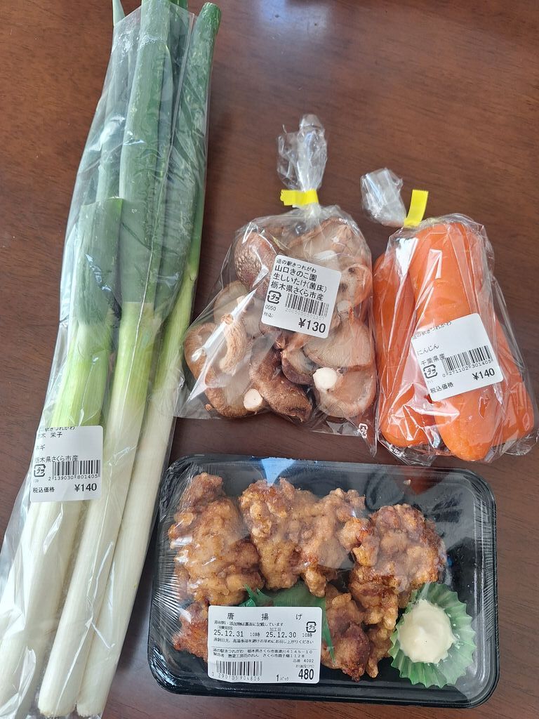 NEWなかがわ水遊園へ出掛けた時に寄りました☆年末は駐車場がいっぱいで、多くの方が訪れ、足湯に浸かっていました。直売所を覗き、シイタケ&にんじん&ネギの野菜たちと、唐揚げを購入♪唐揚げは1個100円もしなくて、マヨネーズが付いてるのが嬉しいです(^ー^) (訪問:2025/12/30)