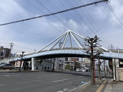 私にとっては、とても思い出の有る遊歩道です。遠くからでも、その斬新なデザインから、直ぐにわかりますね。歩行者、自転車、乳母車も渡れます。沢山の方々が、この遊歩道を利用した事だと思います。 (訪問:2024/05/12)