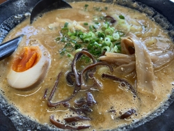 2度目のみろくさん♪黒和とんこつラーメンを注文し、このところ体調を崩しがちだったので、セルフですりおろしニンニクをたっぷり投入〜!♪美味しかったし元気出ました (≧▽≦)!! (訪問:2025/09/23)
