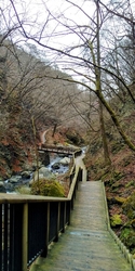 | ◇駐車場から滝まで約500メートル。遊歩道を登り橋を渡ると観瀑台があり、滝の全貌が見渡せます。 | |