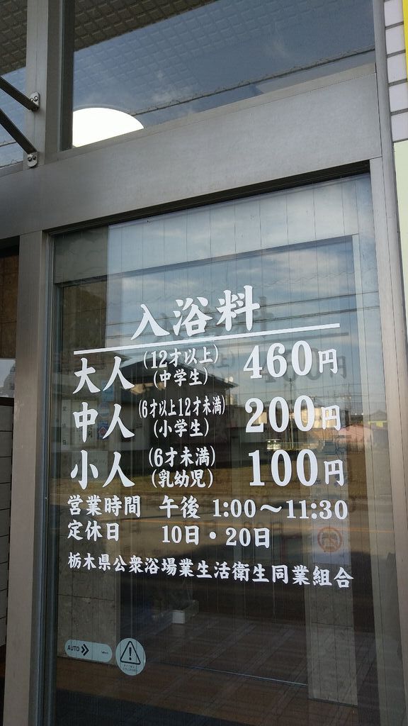 | ご入浴料 乳幼児/小学生/大人 | 100円/200円/460円 |