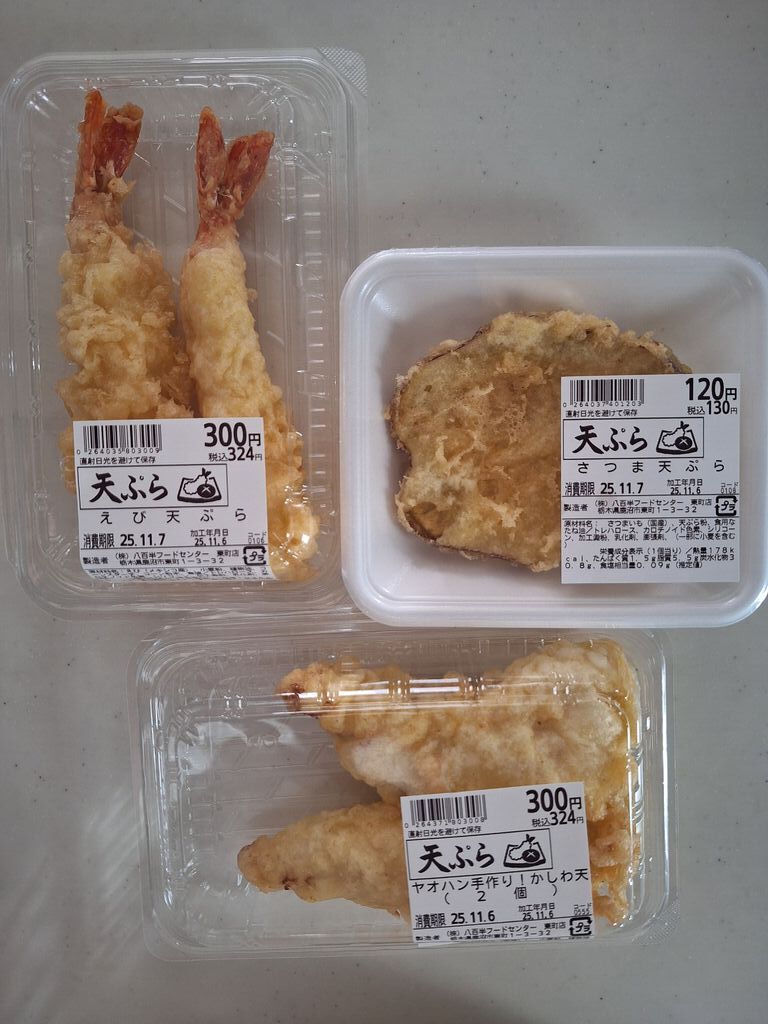 15時頃に行ったら、お値下げ品をたくさん見つけました☆“中華コンビ炒飯弁当”や“鶏皮唐揚げ”や“油淋鶏”は45%オフになっていました!ヤオハン手作りのかしわ天やえびやさつまなど、好きなのをちょっとずつ食べられる天ぷらも購入しました(^ー^) (訪問:2025/11/06)