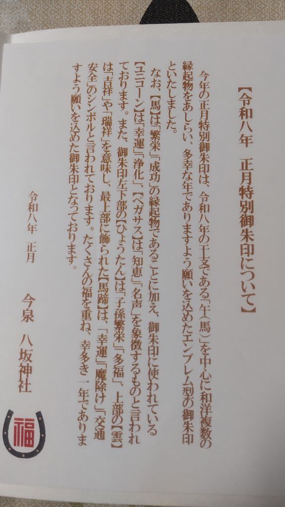 この正月限定特別御朱印をいただきたくて伺いました。幸運・成功・魔よけ・交通安全と全てがつまっていて最強の御朱印です。 (訪問:2026/01/18)