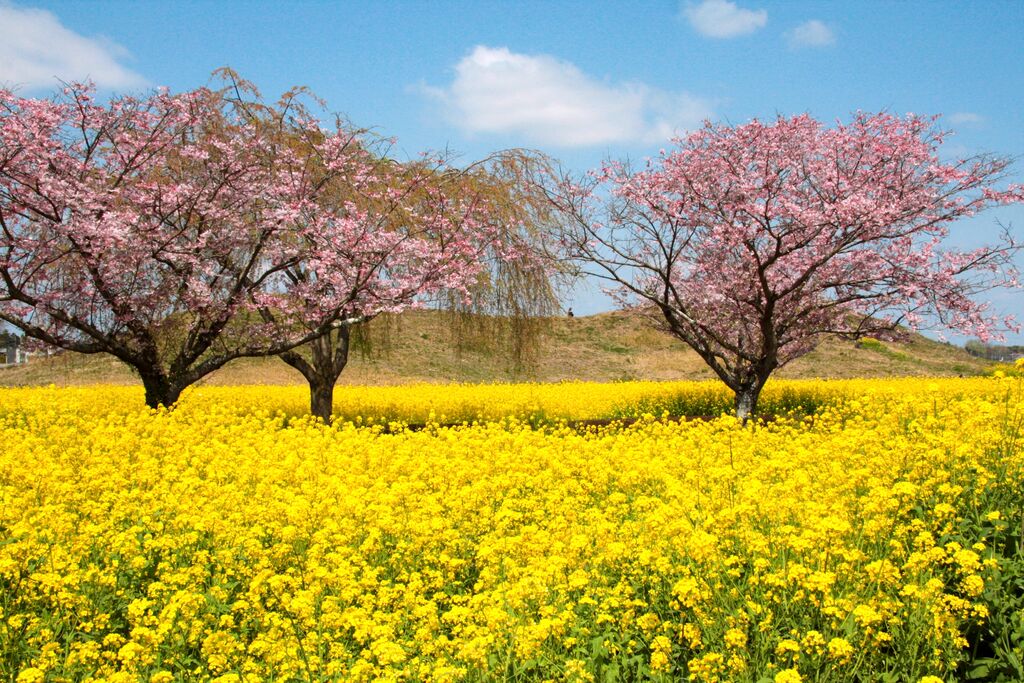 菜の花 道端でも見かけたり、美味しく食べられる野菜としても有名ですが、「菜の花」は植物の名前ではなく、アブラナ科の総称だそうです。一面が鮮やかに咲き誇る菜の花畑、黄色の絨毯は絶景ですよね!淡いピンクのサクラ…