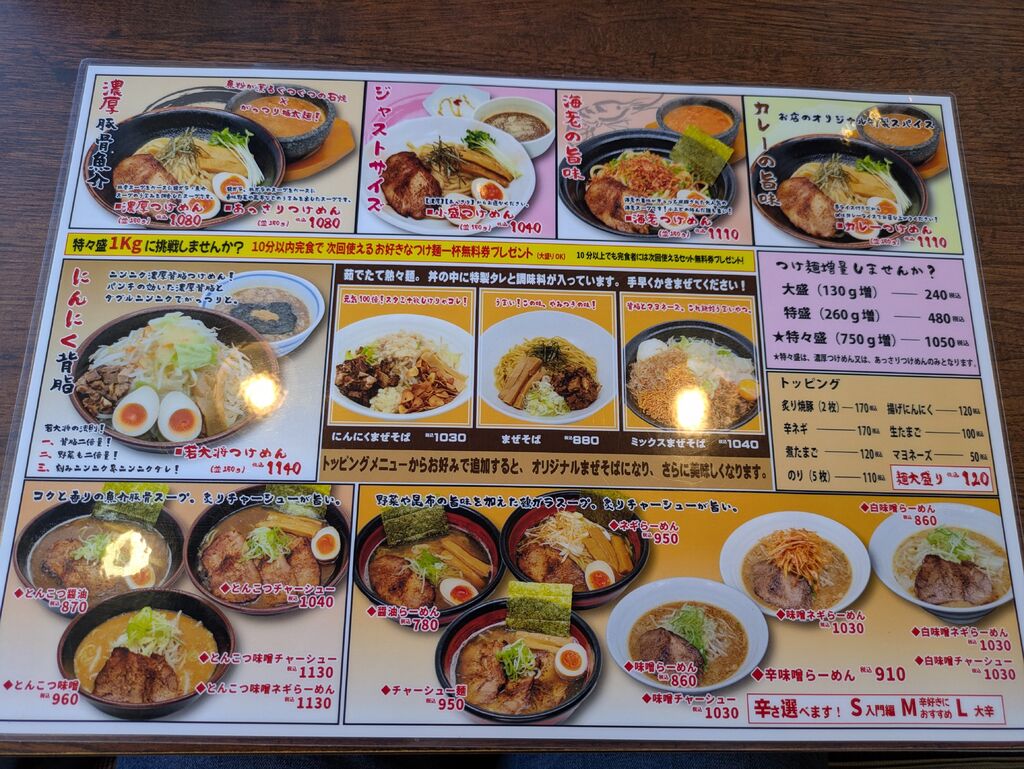 家族でお昼を食べてきました。こあがり席があり、お子様ラーメンもネギ抜きが出来たりするので子供にも安心でした。大人たちは、濃厚つけ麺並盛、海老つけ麵大盛を注文しました。つけ汁が石焼で提供されるので、ぶくぶくと煮立ってアツアツの状態で食べられます。海老つけ麺は海老の旨味が濃厚で太麺との相性抜群でした。食事が後半になるにつれてつけ汁が段々と濃くなり、味わいの変化を感じるのも楽しかったです。 (訪問:2024/11/17)