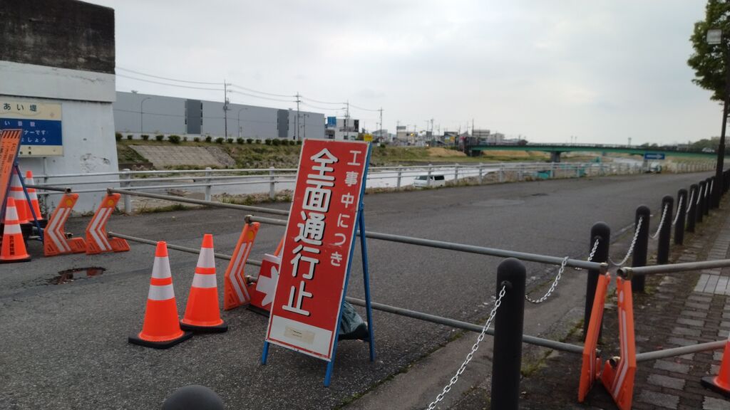 鹿沼市立図書館付近の黒川護岸工事が続いていて、府中橋に向かう一方通行の「ふれあい堤」が全面通行止めです。ヨークベニマルから府中橋に出る抜け道ですが、まだしばらくかかりそうです。 (訪問:2025/04/24)