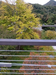 水の郷大つり橋を渡って、険しい山道を展望広場まで登り、長寿の鐘を打ち鳴らしてきました。水の郷大つり橋は、人が歩くと、僅かながらですが、以外とゆれますね。下におりて川面を間近に見たのですが、物凄く水質が澄んでいて美しかったです。正に昔ながらの川の美しい景観でした。 (訪問:2025/09/23)