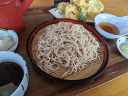 かけそばとそばゼリーをいただきました。かけでもそばはしっかりと香りが感じられました。そばゼリーもホッとする甘さです。玉子焼きが売り切れだったのが残念です。 (訪問:2025/10/08)