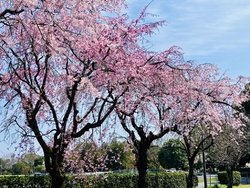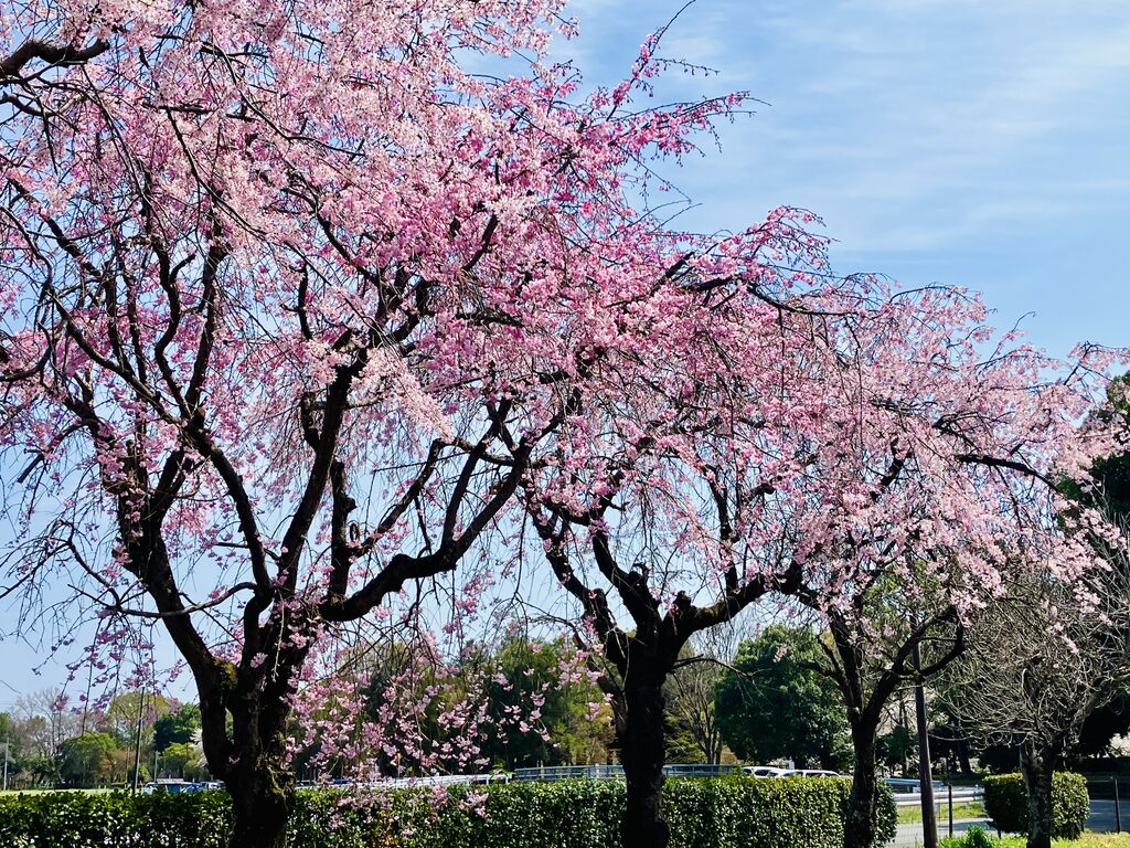 (✿︎╹︎◡︎╹︎)用事の合間に桜の咲き具合を見に来ました。弓道場の近くの川沿いのソメイヨシノ桜は、4〜5部咲きで東側の枝垂れ桜は、5部咲きくらいで濃いめのピンク!それぞれの美しさに時間を忘れてしまいそうになりました(ღˇ◡︎ˇღ)月末には満開になりそうです。 (訪問:2026/03/27)