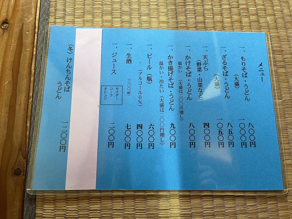 | もりそば(並/大盛) | 600円/800円 |
