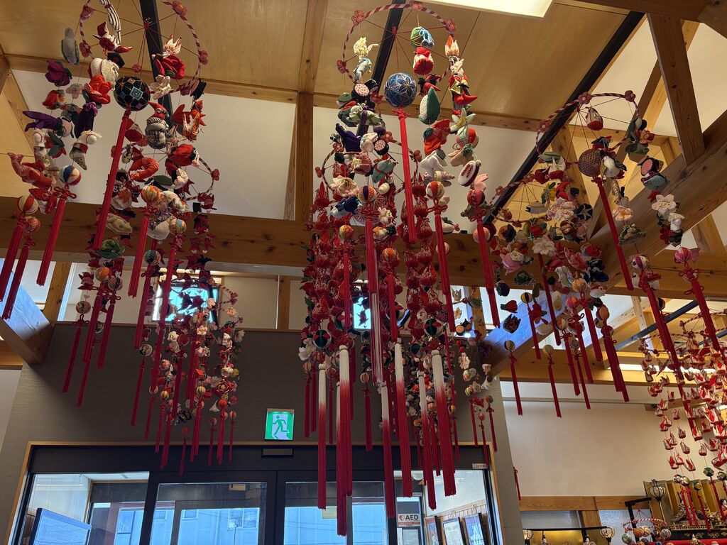 NEW鹿沼おひなさま巡りということでこちらにも伺いました。建物の中に7段飾りが3台飾られこちらも圧巻です。金屏風と黒屏風とではまた人形の見え方が違うものです。こちらの吊るし雛は天井から吊るされているので迫力のある美しさでさです。 (訪問:2026/02/19)
