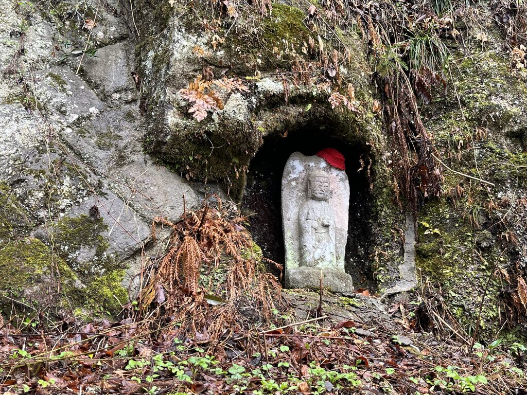 | ◇堂の下の岩観音 | 芦野石の岩肌が露出してそびえ立つその中腹に観音堂があり、通称「堂の下の岩観音」と呼ばれています。岩観音へは、煩悩を洗い清める108段の石段を経て辿りつくことができます。 |