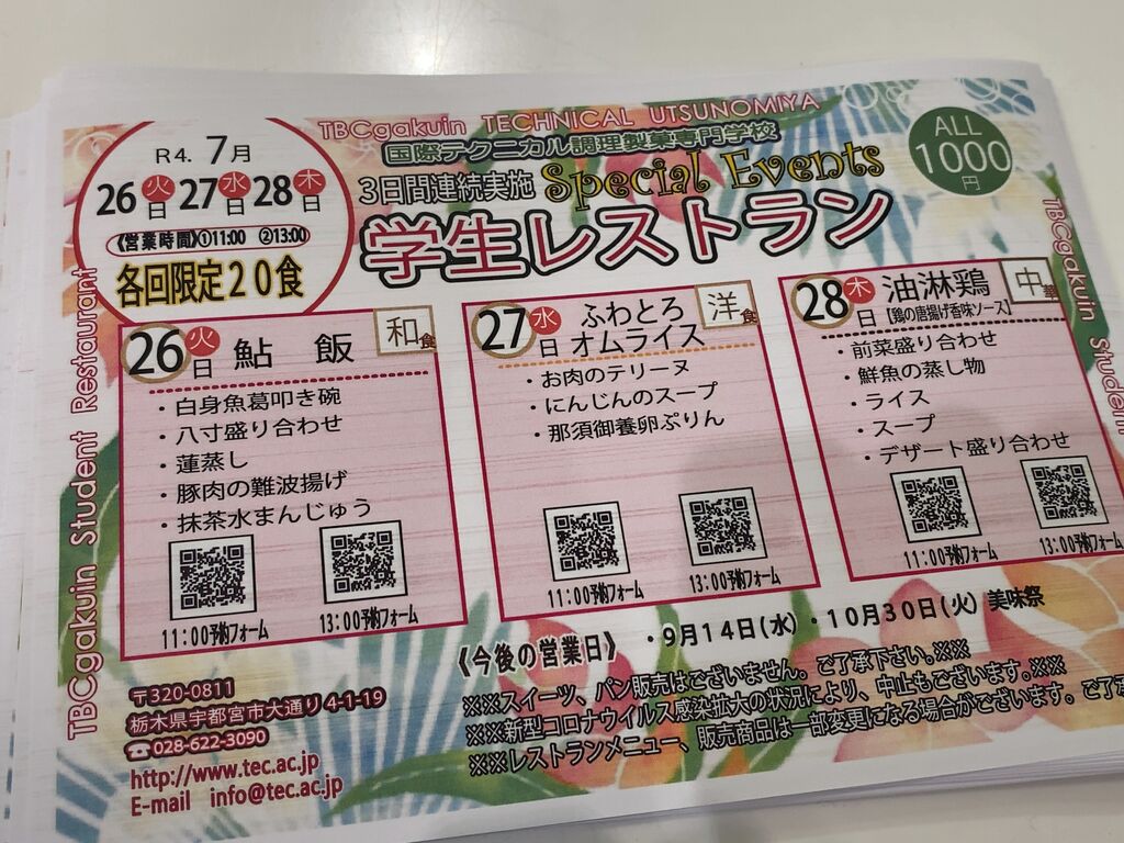 TBC学院 国際テクニカル調理製菓専門学校 学生レストラン