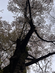 サーフさんの口コミを拝読し訪れました。坂道を上がっていくとワアっとおどけた感じで古木のヤマザクラ(さくら市天然記念物)が姿を現しました。既に七分咲き程度に開花していて春の装いが感じられます。推定樹齢250年、樹高約15m、幹周り450cmの巨木の幹は筋肉の塊であります。傾斜して立っているのにも関わらずパフォーマンス豊かで眺める誰もが明るい気持ちになれるサクラだと感じました。 (訪問:2024/04/05)