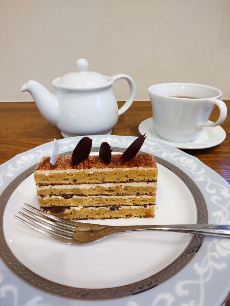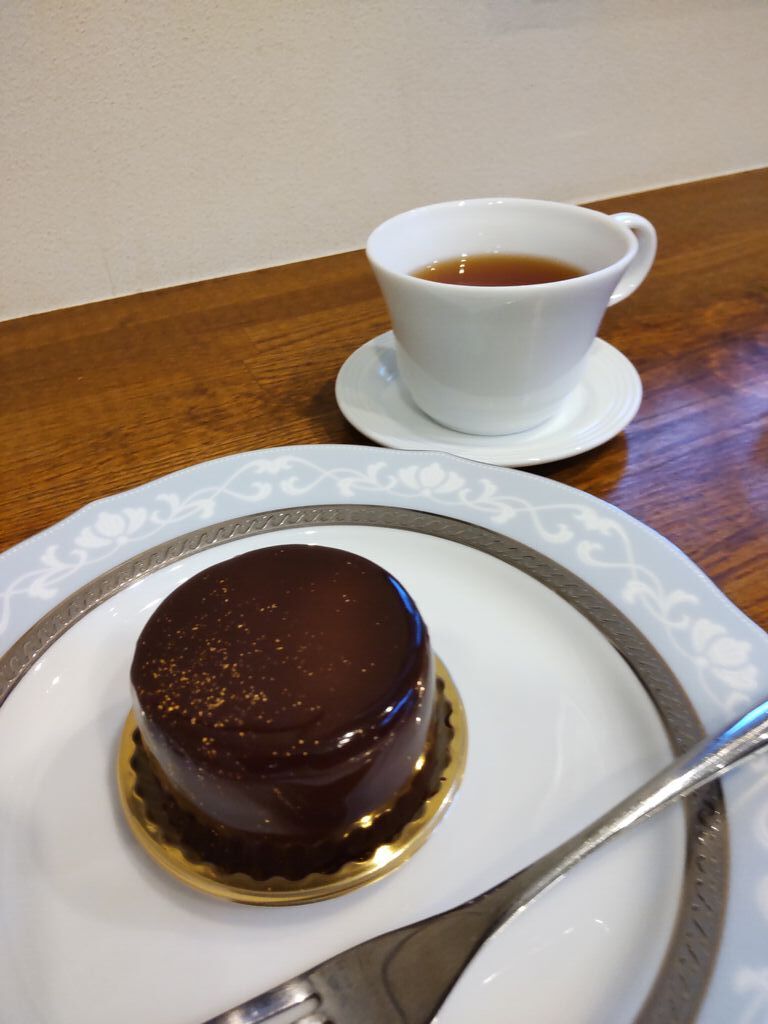 イートインのドリンクは現在紅茶のみとのことでアールグレイでした。カップに1杯と残りはポットごといただけるので2杯分飲めます。コーヒーの苦みにしっかしりたムースで食べごたえがあります。ヒタヒタのビシュキュイも相まって、甘過ぎず、大人のご褒美という感じです。ラムレザンは断面が美しい!けっこうガツンとラムを感じます。チョコのパリパリとした食感がくせになります。 (訪問:2026/03/01)