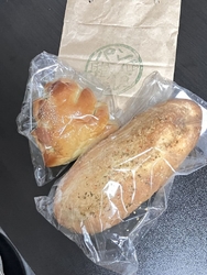 月に一度の職場への移動販売でパンを購入しました。今回は、大好きな秋冬限定の「さつまいもパン220円」と、「クリームチーズパン150円」を購入です。いつもならひとりじめするところですが、さつまいもパンは実家にお裾分けしました。最近、母の食が細くなってきたと父が話していたので、大好きだったさつまいものパンなら食べてくれるかな?と思って持って行きました。翌日、父にどうだったか聞くと「美味しくて、たくさん食べたよ」とのこと。また母に買ってこようと思います。クリームチーズパンは、前回息子さんに食べられてしまったため、私が食べるのは初めてかも。しっとりもっちりな白パン生地の中に、クリームチーズとカスタードクリームが入っています。カスタードクリームの甘さと、クリームチーズの塩味がちょうどよく、夕ごはん後でしたがぺろりといただいちゃいました。次回はどのパンを買おうか、来月の注文が今から楽しみです。美味しい幸せをありがとうございました。ごちそうさまでした~。 (訪問:2025/12/09)