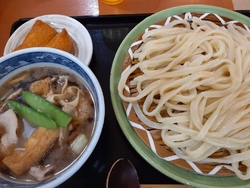 季節限定の舞茸天付き肉汁うどんを食べに来ました。いつもは開店後すぐ来るのですが今日は12時半前になってしまったら店内いっぱい、入店待ちでした。サラリーマンの方々が多いですが、私と同じお一人様女子もいらっしゃいます。おつゆ熱いで〜すと着丼。ネギ、油揚げ、豚肉の入った汁はたっぷり。大きな舞茸天はそのまま食べて半分は汁につけて食べました。天ぷらですが汁があっさりしてるので油っこくなることなく美味しく頂きました。次の季節限定は寒くなってきたのでとろみのあるものが希望です。 (訪問:2025/11/11)