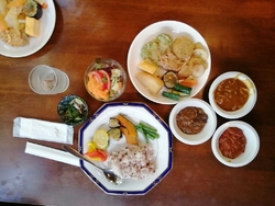 前から来てみたいと思っていてようやく来れました!お野菜中心のビュッフェで健康的な食事。11時半に予約して行ったのでスムーズに入れました。色んな種類のお野菜料理が並んでお腹いっぱいに食べてしまった。特に大根春巻きとすいとん、桜エビと枝豆の炊き込みご飯が美味しかったかな。食後にニャンコの形をした最中とコーヒーゼリーと豆乳プリンとホットコーヒーでフィニッシュ!ご馳走様でした。今度はお花が咲く頃に伺いたいな。 (訪問:2025/02/23)