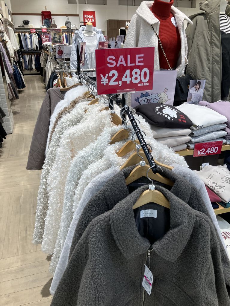 NEW冬物セールをしていました。半額近くまでお値下げされた服がたくさんあり目移りしてしまいました。デザインが気に入ったニットがありサイズもちょうどよかったので購入しましたが、お安く買えてよかったです。 (訪問:2026/02/06)
