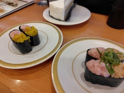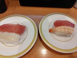 こちらの店舗は、初めてです!近くまで来たので、お昼ごはんに一人で来店です(*^^*)平日ともあって、店内は空いていて、カウンターでゆっくり食べられました。タブレットで、大好きなマグロ、サーモン、イカ、エビとオーソドックスなものから攻めた(笑)軍艦も好きなので、外せません(笑)たらマヨ、サラダ、色々あって嬉しい〜、ワサビ大好きなので、忘れずに。ガリも途中食べながら、次の注文を考えますWWW 9皿食べてお会計!!支払いも電子マネーや、カード等たくさん選べてスピーディーでしたよ。久しぶりにお寿司食べられて大満足な日でした。美味しくて食べ過ぎ注意です!ごちそうさまでした(≧∀≦) (訪問:2025/02/20)