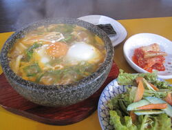 旧黒磯の駅前近くにオープンしたので行って来ました。ランチが500円でした。メニューを度忘れしましたが、うどんが石の器に入ってあつあつをいただき美味しかったです!サラダや自家製キムチもついてこのお値段にびっくりです!にんにくの調整もしてくれるので、ランチにもオススメです!オーナーさんも気さくで楽しいですよ! (訪問:2013/11)