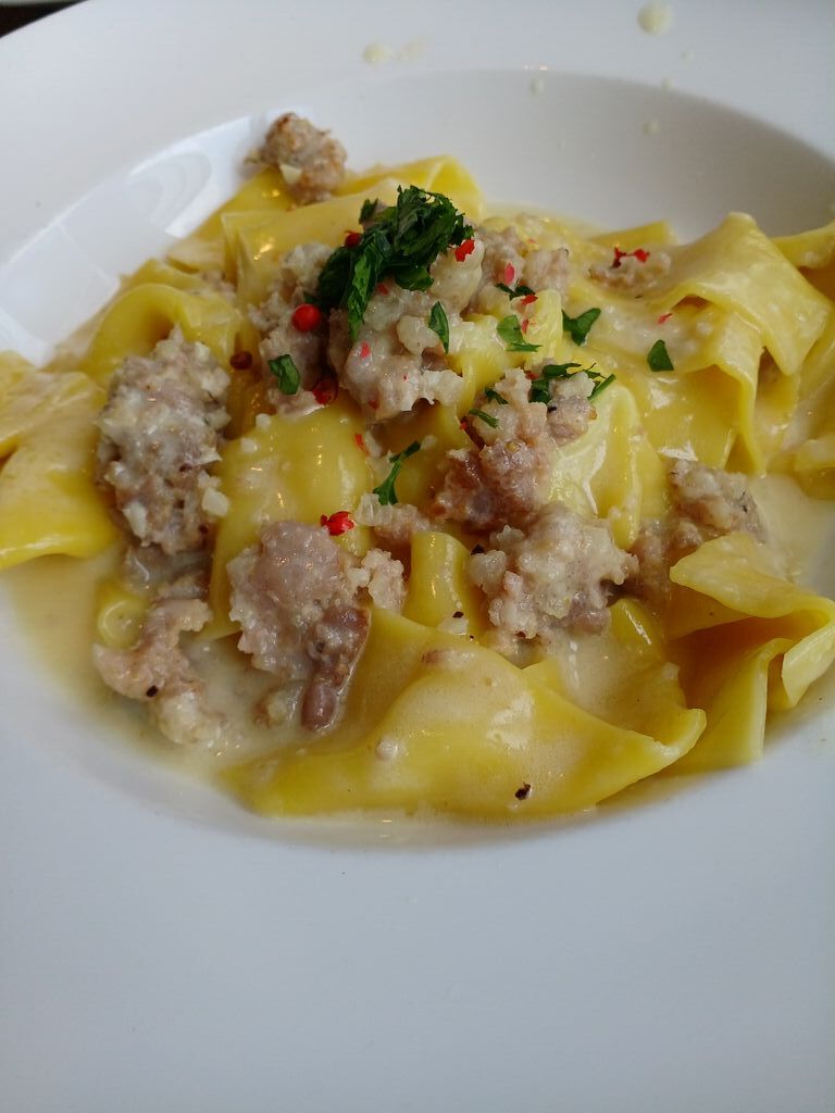 何年も前から気になっていたイタリアンに初訪問。エントランスからお洒落な雰囲気でワクワク。せっかくなので、パスタランチに前菜セットをプラスしました。夏野菜を使った前菜は自然な素材の味が楽しめました。サラダのドレッシングはさっぱりバルサミコ酢かな。パスタはイベリコ豚のサルシッチャをチョイス。肉汁溢れるサルシッチャとモチモチ食感の生パスタが相性バッチリ◎濃厚なクリームソースで、とても食べ応えのあるパスタでした。まるで美術館のような非日常空間で、ちょっぴり贅沢なお料理を堪能できるお店、女子会やデートにオススメです。 (訪問:2023/06/26)