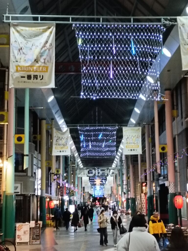 冬期のオリオン通りのイルミネーションが様々な装飾と共に輝いています☆そして昭和ノスタルジックな「オリオン通り」のネオンサインを特に見て欲しいです♪天井があるので反射してキラキラしています♥ (訪問:2026/01/09)