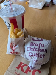 アプリのネット注文限定クーポンでチキン&ビスケット&コールスロー&ドリンクのセットが550円!安~い♪時間指定で待たずにゲットでき美味しくいただきました☆ (訪問:2025/08/02)