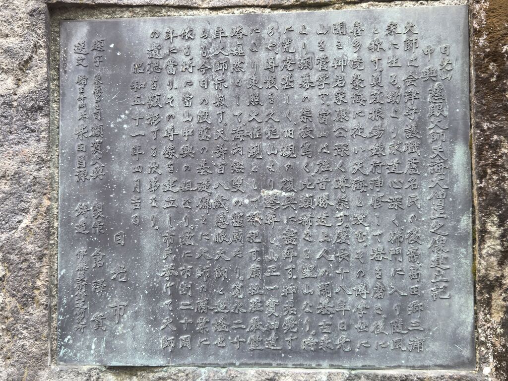日光山復興の立役者で徳川家康公の側近だった人です。この威厳のある表情のブロンズ像は日光市出身の倉澤寛先生の作品で島根大学で教鞭をふる傍らゲゲゲの鬼太郎、名探偵コナンなどのキャラクター像も手掛けた人です。像を良く眺めていると日光山全体を注視する様に建てられていて正に天海大僧正の心の内を汲み取った作品だと感じました。 (訪問:2023/12/23)