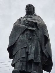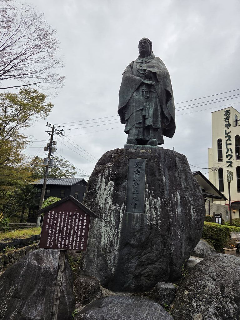 国道119号沿いにあり、近くの「神橋」を眺めるようにして建っている銅像です。観光客の中にこの像をスルーされる方を見かけましたが、“天海“は江戸時代に日光を再興した立役者ともいうべき僧侶であり、歴史への理解を深めるために、ぜひ立ち寄っていただきたいスポットです。像のわきに、わかりやすい説明板があります。 (訪問:2025/09/21)