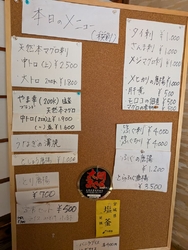 フグを食べたことのない私は、友達に美味しいから1回ぐらいは食べに行こうと誘われて、友達に連れて行ってもらったのですが、フグ刺しの美味しいこと。唐揚げ、フグ鍋と食べましたが、あっさりしていて何とも言えない美味しさでした。でも最後の雑炊が一番美味しいと思いました。2000円なんて嘘みたいな感じでした。11月末までとのことなのであと2回は行きたいと思います。 (訪問:2014/10)