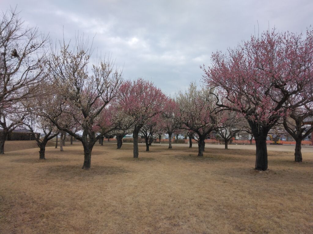 NEW1週間ほど前の新聞で、梅の開花の記事に目にし、是非、拝見したく伺いました(((o(*゜▽゜*)o))) 紅梅も、白梅も見事な咲きっぷり☆*: .。. o(≧▽≦)o .。.:*☆ ただ、到着時には曇天に変わってしまったのが、少し残念でした( ╯□╰ ) その代わり、風がそよいで、紅梅からは爽やかな香りが漂ってきて、最高ヾ(≧▽≦*)o 梅林を散策し、堪能させていただきました(●ˇ∀ˇ●) 同じように見学に訪れる方も多く、復元回廊も風景に溶け込み、梅林とのショットも、スマートで、カッコイイデス°˖✧◝(⁰▿⁰)◜✧˖° (訪問:2026/02/16)