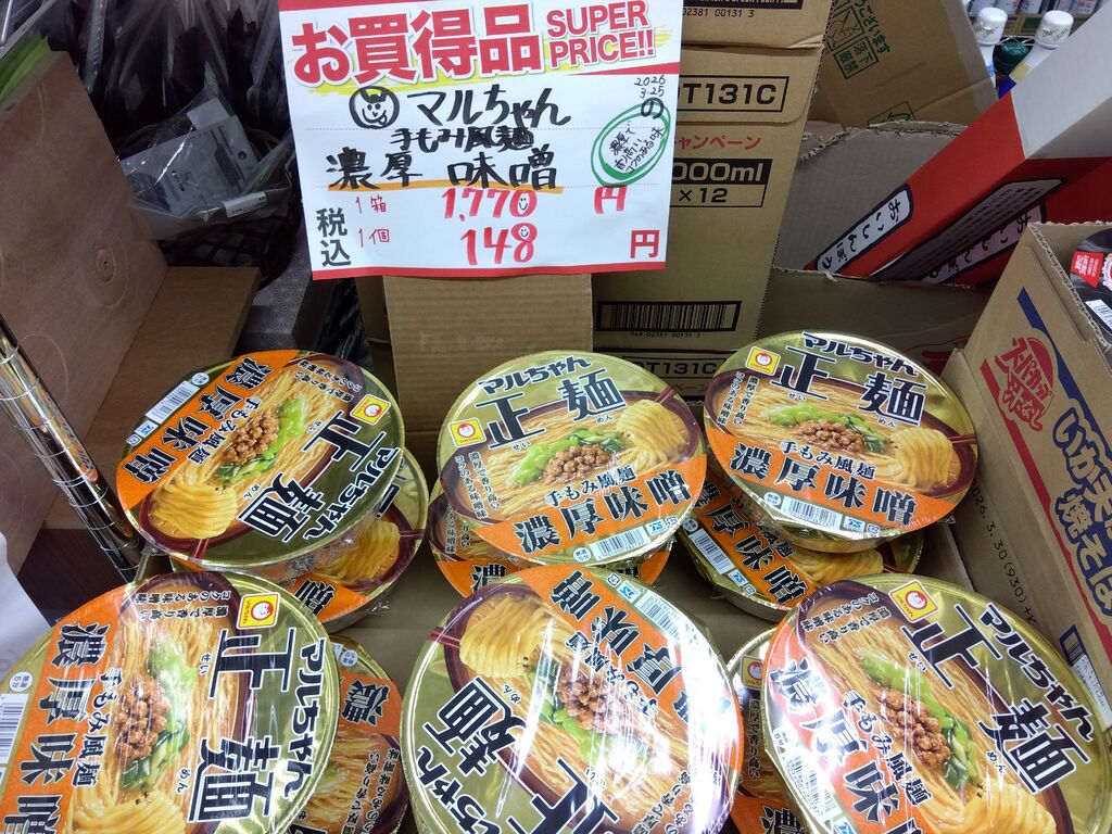 入口付近に超お買い得なシクラメンがキレイに咲いていましたぁ(^∇^)ノ☆まだまだ蕾があって楽しめそうです〜♪他にもお野菜やフルーツ、シイタケ、お菓子、カップ麺などなどお買い得品がもりもりでしたぁ〜(≧▽≦)♪しもつかれ用の?鮭の頭や酒粕なども登場していて季節を感じましたぁ( ꈍᴗꈍ)♪以前購入して美味しかったお買い得なハチミツが奇跡的に残っていたのでリピ買いです♪気になっていたカップ麺もお安くゲット〜☆また楽しみにおじゃましま〜す♪ (訪問:2026/01/13)