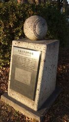 | ◇1932年(昭和7年)開場、1960年(昭和35年)閉場された宇都宮常設球場があったことを語り継ぐために2004年3月に建立。大谷石製。 | |