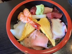 20年以上前からあるお店だと思います。店の前の通りをよく通りますが、行こう、行こうと思いながらなかなかチャンスがありませんでした。お昼過ぎの13時頃の訪問のため、ちょうど昼ピークも過ぎていて、駐車場も空いており、他にお客様はいませんでした。にぎりとちらしを頼みました。どちらにも小鉢で大根の煮物とキュウリの浅漬けとしじみの味噌汁がついています。にぎりは当然ですが、まぐろの巻物の具材が大きく、食べ応えがありました。 (訪問:2024/07/05)