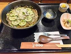 那須街道にある古民家風の建物が心地よいお蕎麦屋さんです。お店の前には小川が流れていて、那須街道からは少し奥まっているので、静かで落ち着きます。湯葉のお蕎麦が美味しいと聞いていたのですが、夏限定のすだち蕎麦があったので、湯葉はまたにしてすだち蕎麦を注文。お蕎麦の上に輪切りにしたすだちが並んでいて、見た目も爽やか。味もさっぱりしていて、お汁もみんな飲み干せそうないい味付けでした。一緒に行った友人の湯葉蕎麦を少し味見させてもらったのですが、湯葉が濃厚でクリームを思わせるような贅沢なお蕎麦でした。次回はこちらに挑戦したいです。 (訪問:2024/06/30)